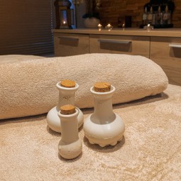 Hammam + Gommage au savon noirNotre gommage La Sultane de Saba est une pâte naturelle et traditionnelle obtenue à partir d'olives du Maroc. Associé à l'action du gant de kessa, il exfolie tout en nourrissant votre peau. Ce soin s'utilise aussi bien pour le soin du visage ou du corps, que pour la...